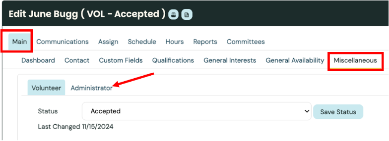 Dans l’exemple ci-dessous, Rose est à la fois une bénévole acceptée et une administratrice active.
