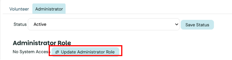 Une fois que le module Administrateur a été ajouté à un profil, vous pouvez choisir s’il a un accès complet au logiciel ou un accès limité/à certains modules en cliquant sur Mettre à jour le rôle d’administrateur.