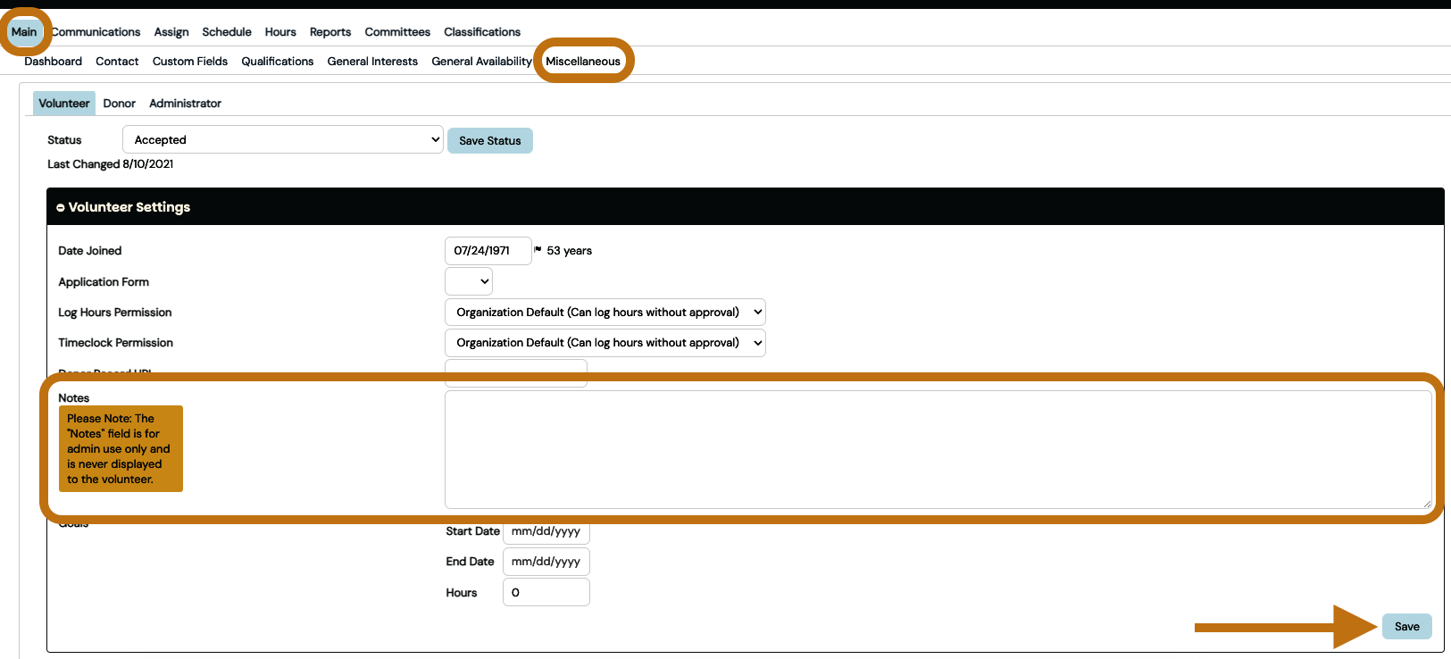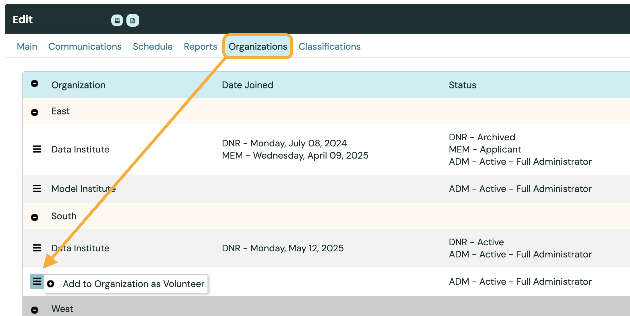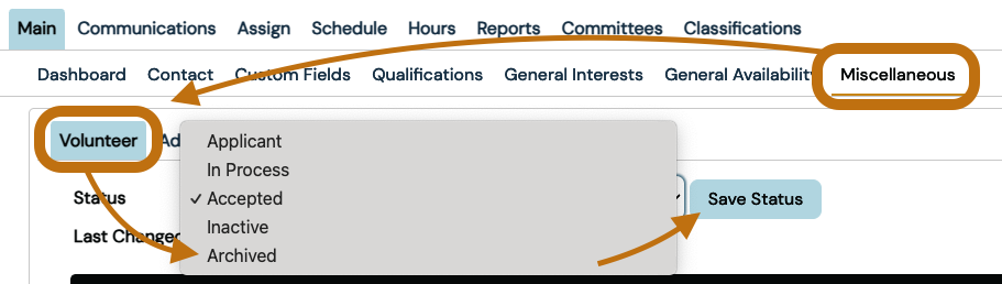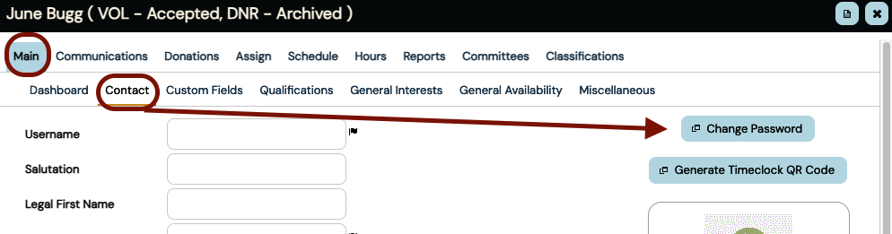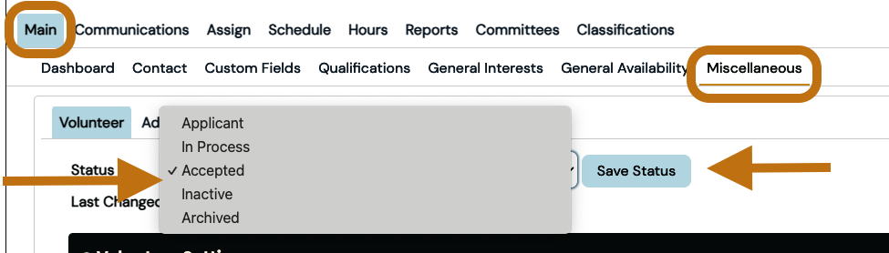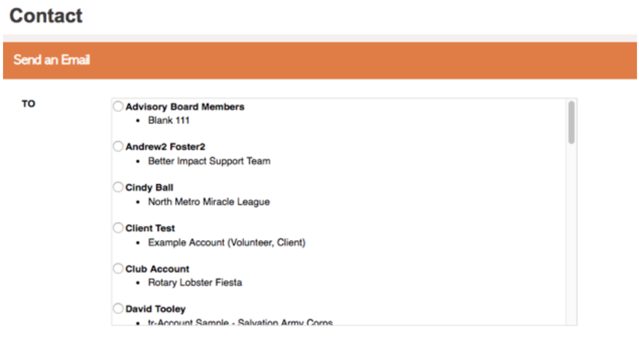 Select the appropriate section (i.e. “Volunteer”, “Administrator”, “Client”, “Member”, “Donor”)