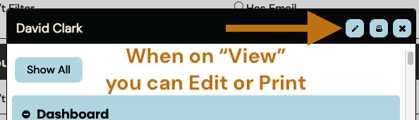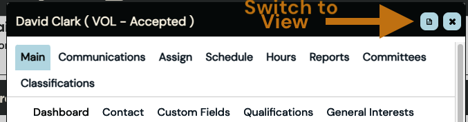 Alternatively, you can choose to edit the profile, allowing you to edit and update the user's information as needed. You can switch between these 2 options using the "View" and "Edit" icons found next to the volunteer's status when in a profile.