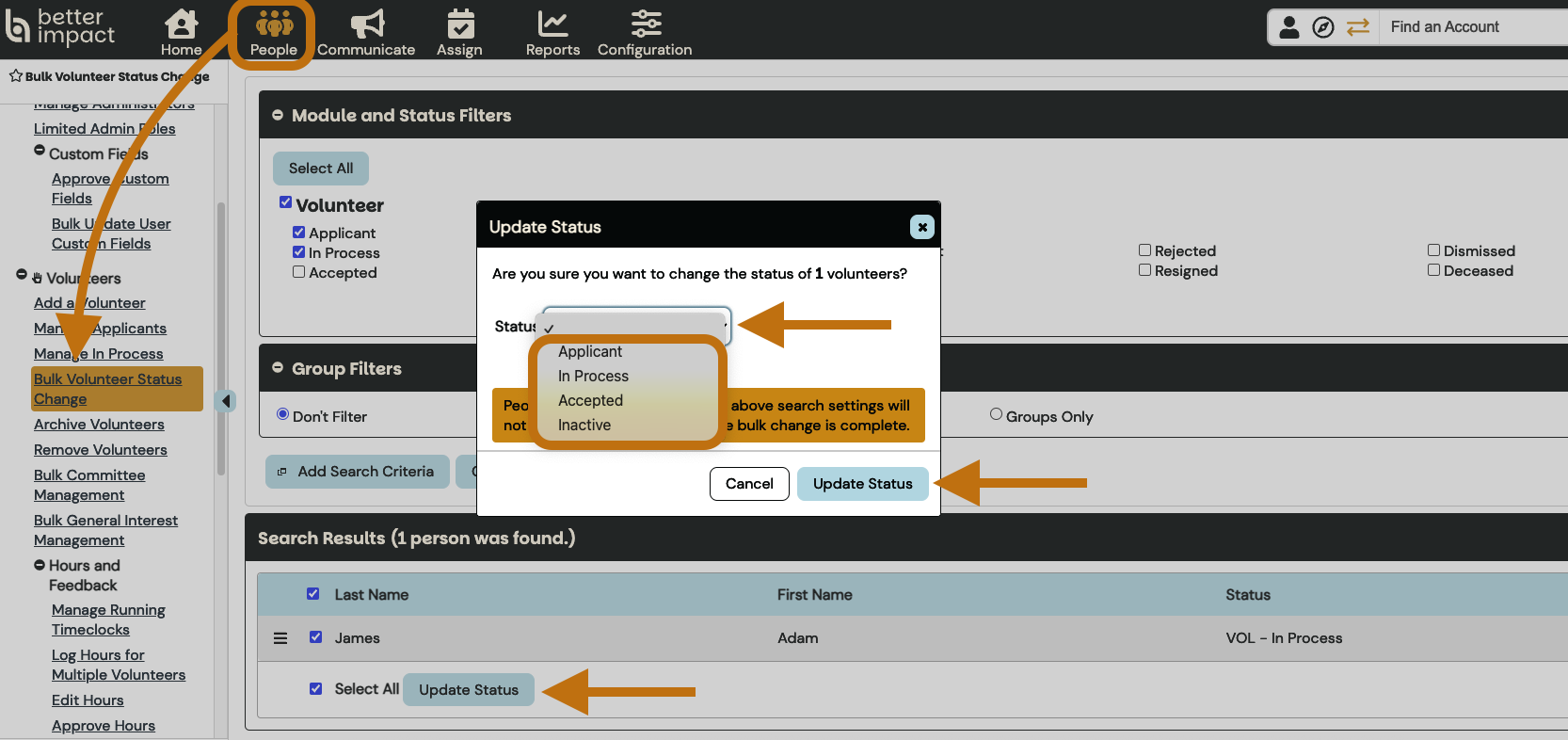 If you have multiple modules in your Better Impact account, you will be able to select a status for each module if desired.