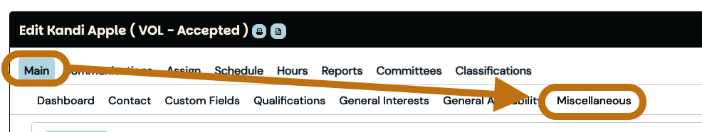 Existing Profiles – If you wish to make an existing profile a group profile, edit it and go to the “Miscellaneous” section under the “Main” tab. Scroll down to the “Group Settings” section under Volunteer and check the “Group” checkbox and name the group.