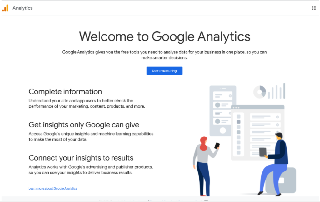 If you don’t have any analytics setup on the account yet, you’ll see a welcome screen with a [Start Measuring] button