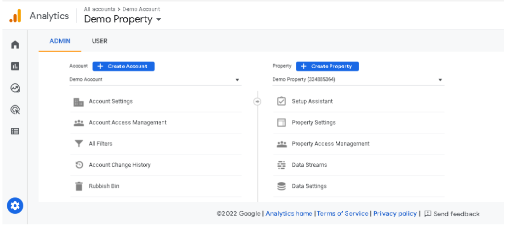 Click the Admin Settings Icon at the bottom left of your analytics.google.com home page
