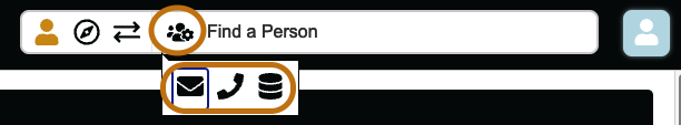 Tip: When using the Specific Field Person searches, you can either select one of the three icons or type in the shortcut p: (for phone number), e: (for email address), or id: (for Database User ID), before proceeding with typing in the searchable information.