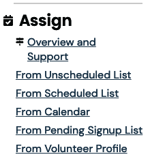 Go to: Assign >> From Volunteer Profile