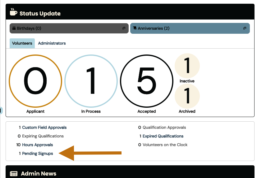 Note: You can also find this pending Signup list on your Admin Dashboard: