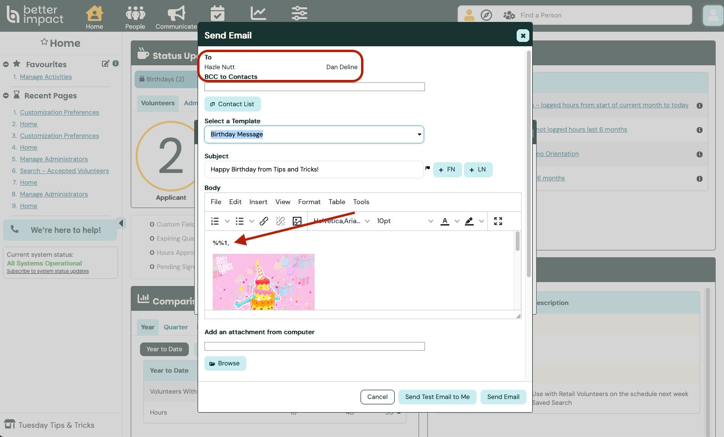 Send Emails from the Schedule or Alerts | Better Impact Help Center