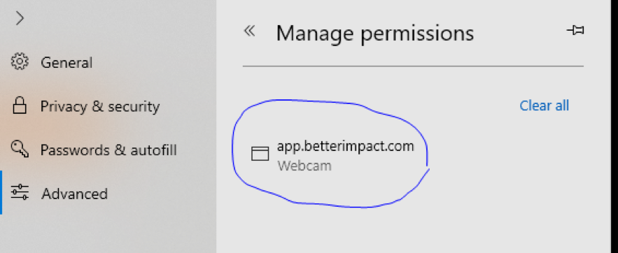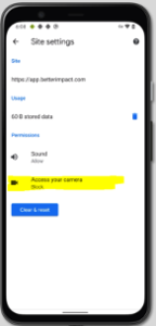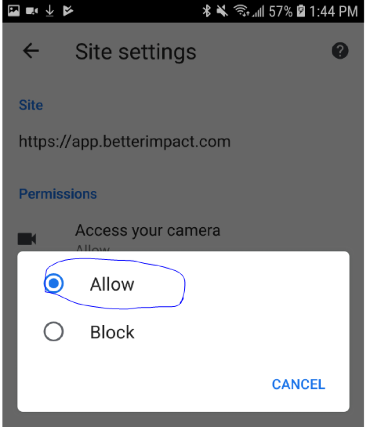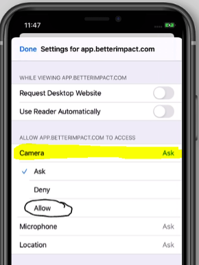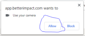 Chrome should ask if you would like to allow app.betterimpact.com to use your camera. Click the [Allow] button.