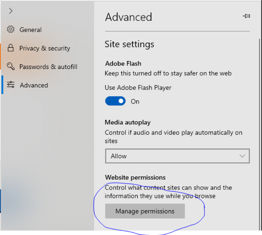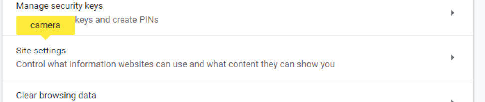 If you still are not prompted or have accidentally blocked the camera, you will need to re-enable it. Go to the menu beside the address bar, and select “Settings”. Then scroll down to “Site Settings”