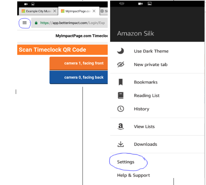 Open the Kindle “Silk” browser and enter your express timeclock url.