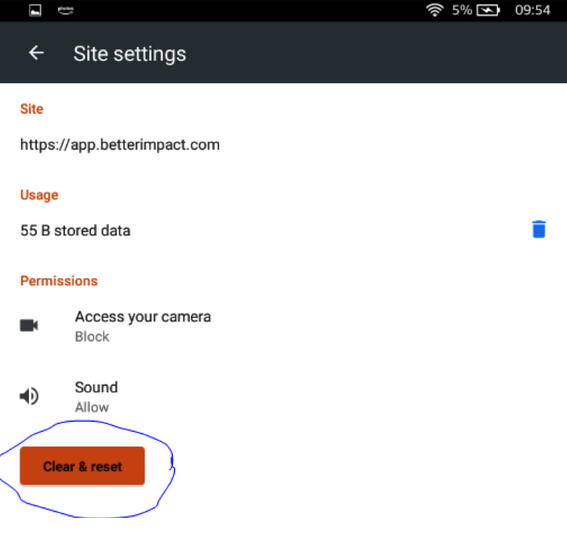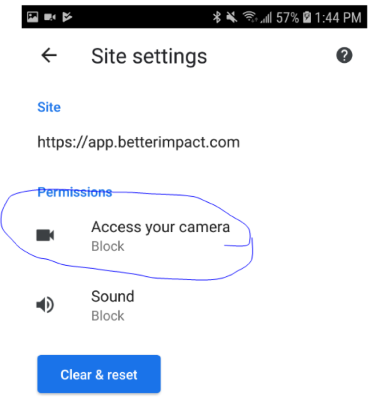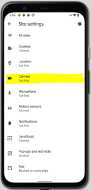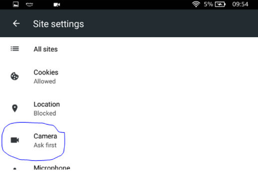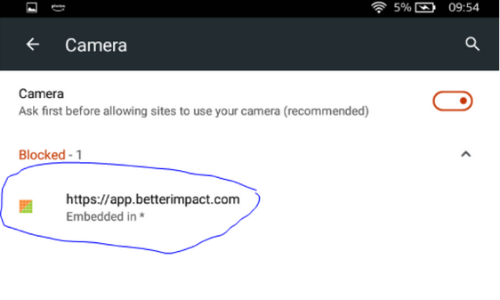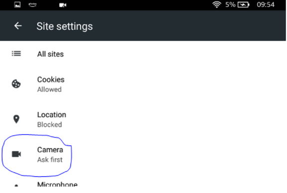 If you accidently block the camera, or need to re-allow it for any reason, you can clear the camera preferences via the settings.