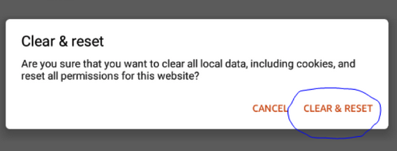 Click “CLEAR & RESET” in the confirmation that comes up.