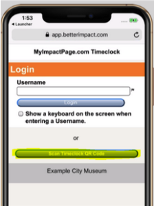 Press the [Scan Timeclock QR Code] button to switch to the QR code version.