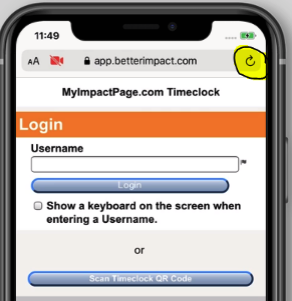 Refresh the page by tapping the refresh icon on the right side of the address bar.