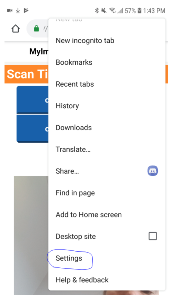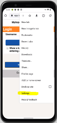 In Chrome, press the menu at the top (three dots stacked), and then select Settings.