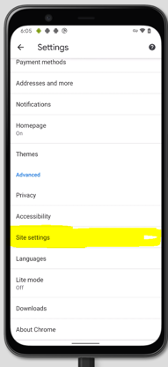 Press the menu button (beside the address bar, three dots) and select “Settings” (It is near the bottom, you may need to scroll).