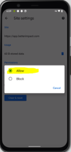 If app.betterimpact.com is listed in the “Blocked” list, click on the link.
