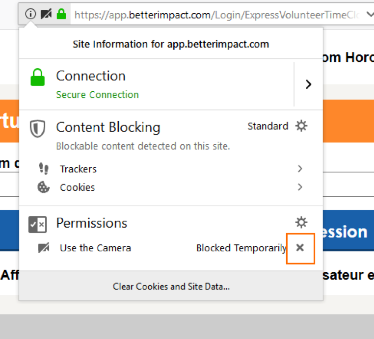 Select Camera, then turn OFF the option, “Ask first before allowing sites to use your camera”. (This will allow your volunteers to skip the prompt to access the camera every time the timeclock is used)