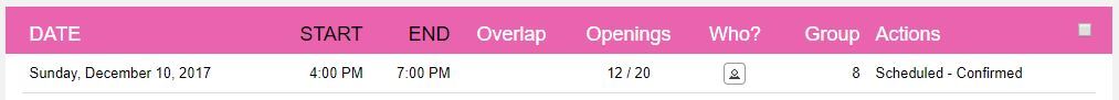 'Assigned' means that the volunteer is officially on the schedule for that shift or activity. A volunteer's sign-up can be moved to "Assigned" in one of two ways: