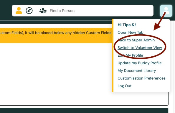 Volunteer Module only – ensuring it is available on volunteer profiles